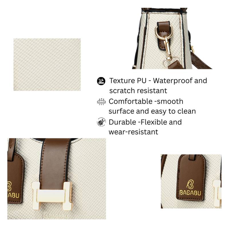 The Bagabu Luxury Textured Sling Is A Sophisticated Accessory Designed For The Modern Professional Woman. Crafted From Premium Pu Leather With A Smooth Weave Texture, This Elegant Handbag Combines Style And Functionality For Everyday Use. The Rectangular Silhouette Features A Classic Solid Pattern That Complements Any Office Or Casual Ensemble. This Versatile Bag Offers Three Spacious Compartments And Four Pockets, Including Two Zippered Compartments And An Interior Zip Pocket, Providing Ample Organisation For Your Essentials. The Fabric Lined Interior With Multiple Compartments Keeps Your Belongings Neatly Arranged. Weighing 800 Grams With A 15 Litre Capacity, This Medium Sized Tote Measures Approximately 35 Cm In Length, Making It Perfectly Proportioned For Daily Use. The Bag Features Two Top Handles For Easy Carrying, Along With A 120 Cm Detachable Sling Strap That Allows You To Wear It As A Shoulder Or Crossbody Bag. Gold Hardware Accents Add A Touch Of Luxury To The Design. Suitable For All Seasons And Occasions, This Vegan Leather Handbag Is An Ideal Choice For Professional Women And Office Workers Seeking A Stylish Yet Practical Accessory. The Synthetic Fill Material Ensures The Bag Maintains Its Elegant Shape Whilst Remaining Lightweight And Comfortable To Carry.