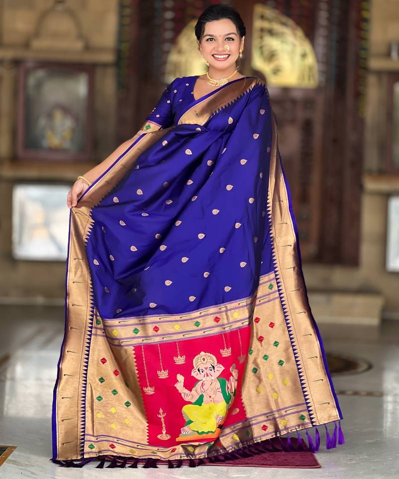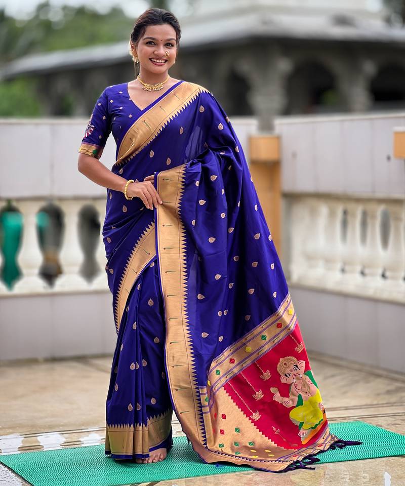Saree : Color- Royal Blue / Fabric- Paithani Silk