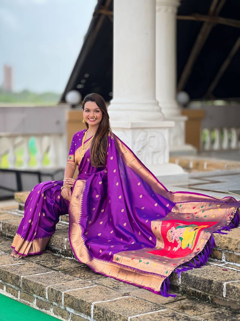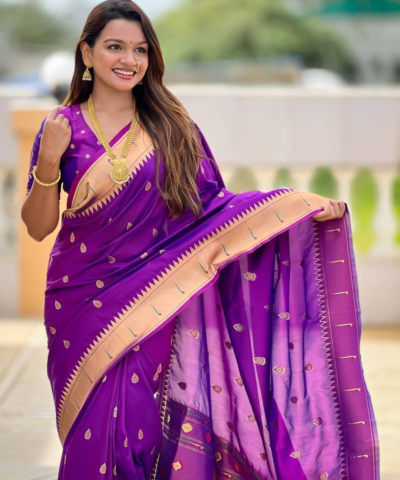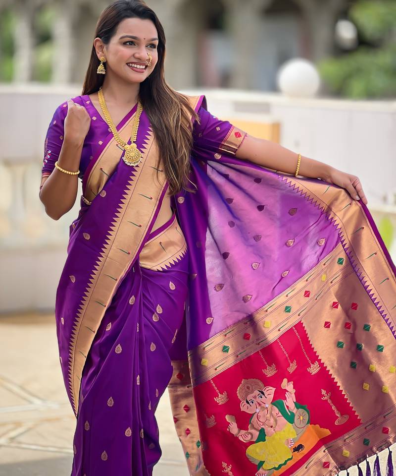 | • | Saree | : | Color- Purple / Fabric- Paithani Silk |