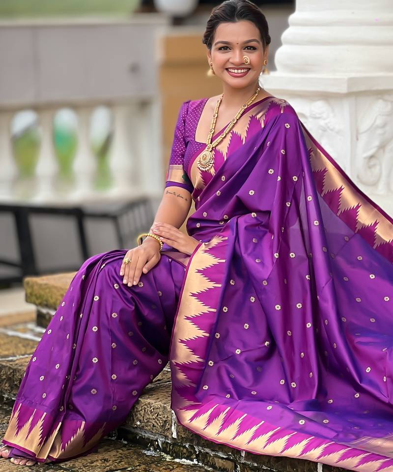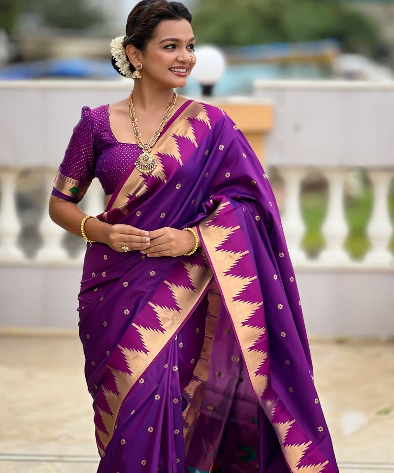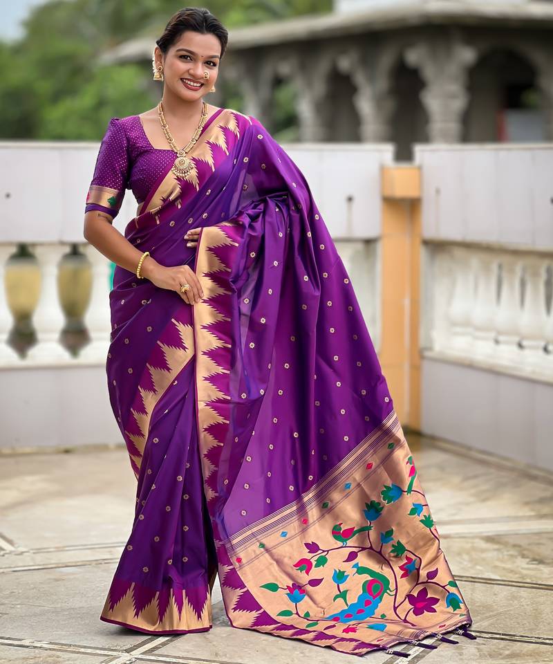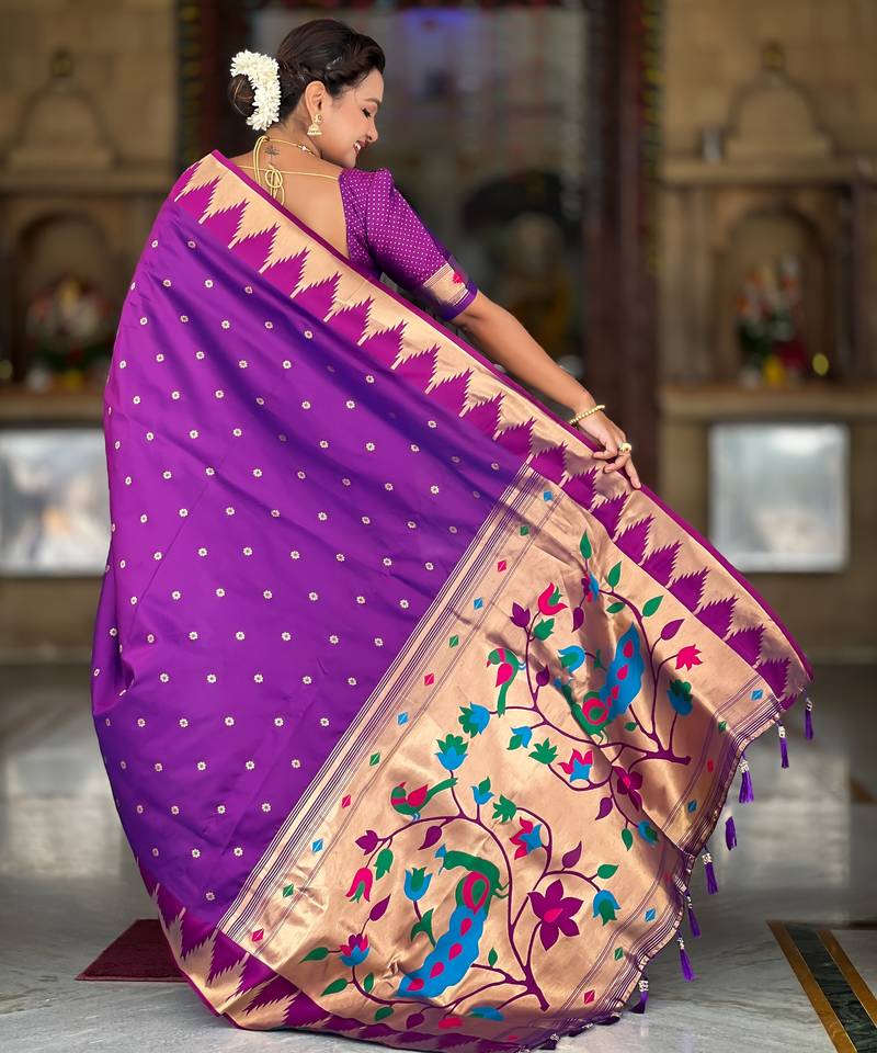 | • | Saree | : | Color- Purple / Fabric- Paithani Silk |