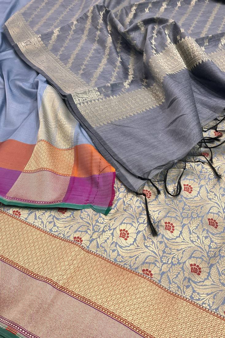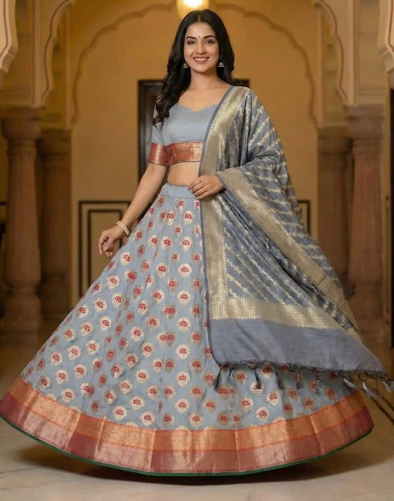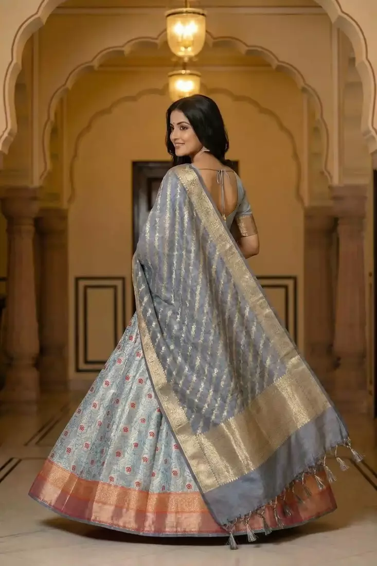Pure silk unstitched banarasi lehanga set in grey colour with blouse