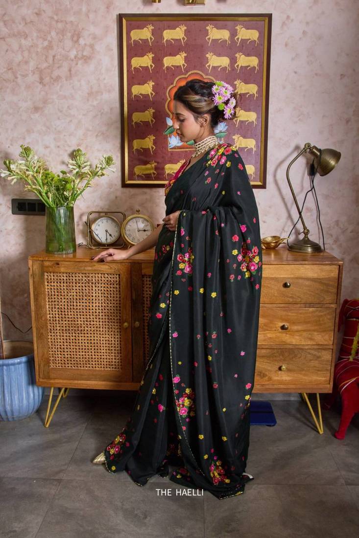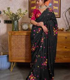 | Product Name | Black Color Flower Print With Handwork Cut Dana Work Organza Saree | |