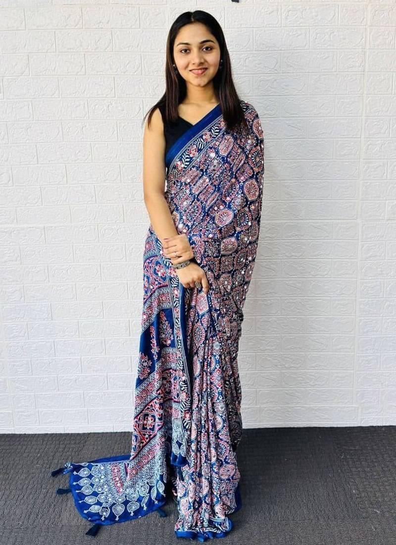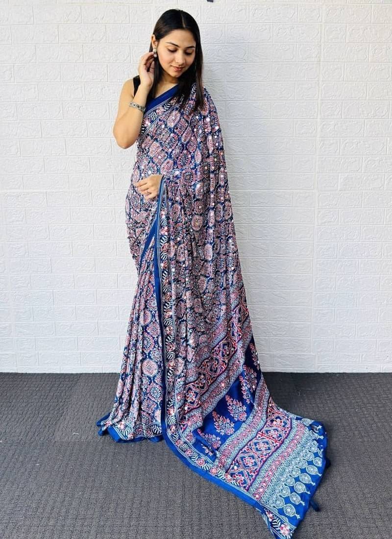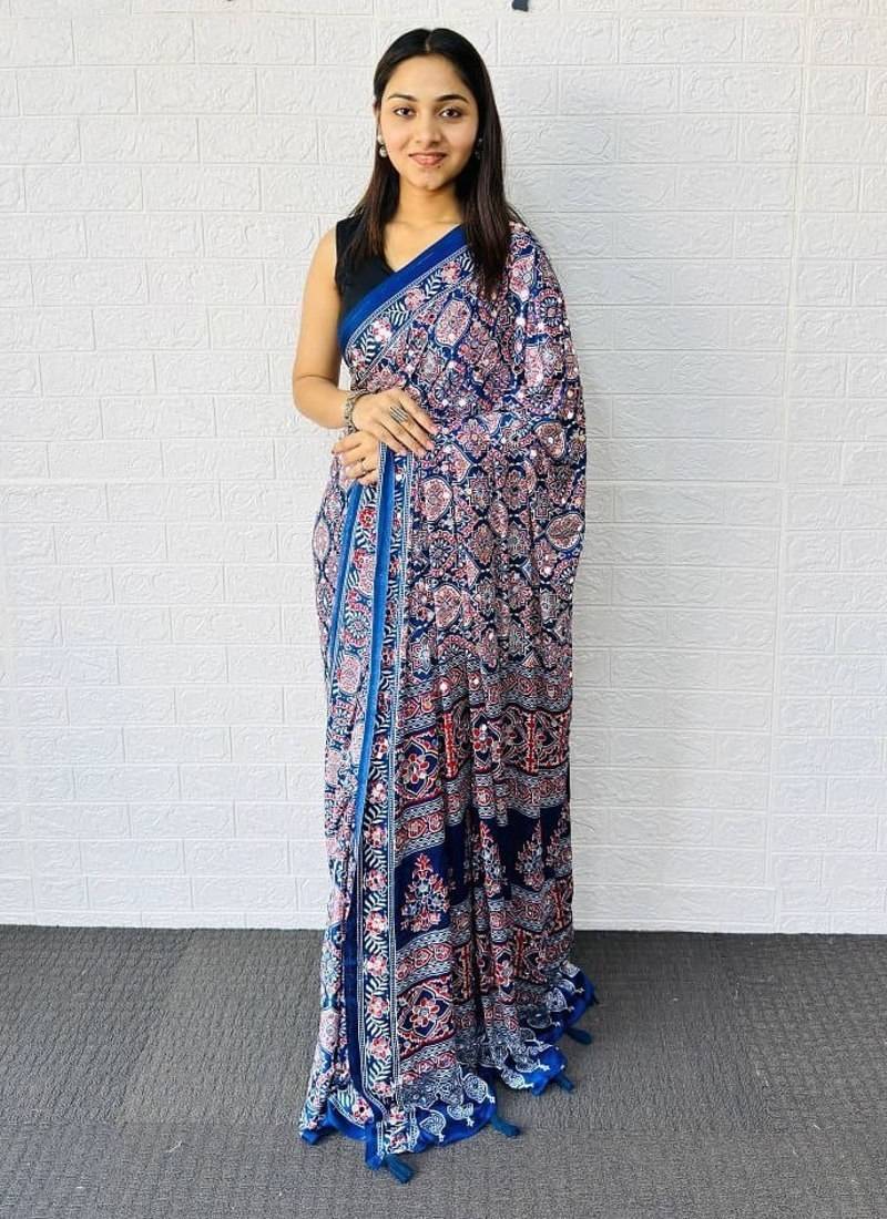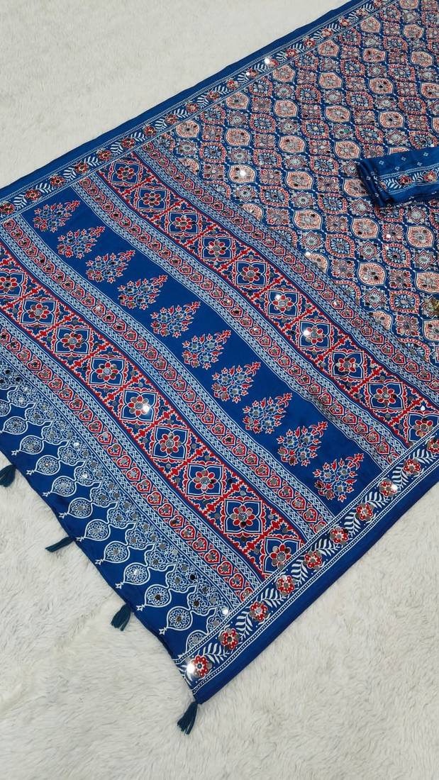 | Product Name | Blue Color Heavy Mirror Work With Elegant Latkan Pallu Border Work Satin Saree | |