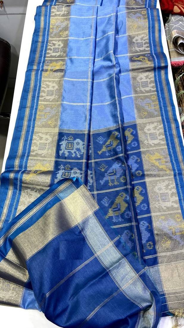| Product Name | Blue Color Unique Chex And Patola Combination Pure Silk Saree | |