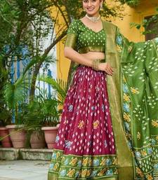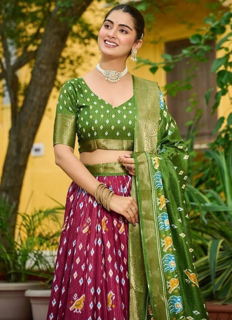 Green color print work jacquard lehanga choli set