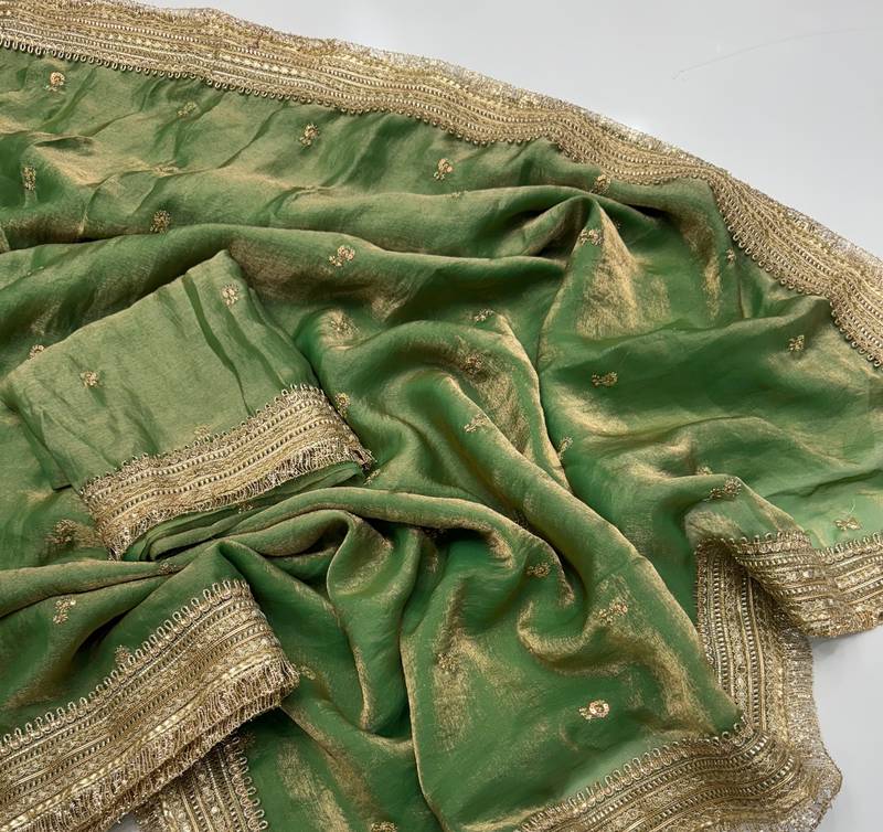 | Product Name | Green Color Sequence Embroidery Work Satin Saree | |