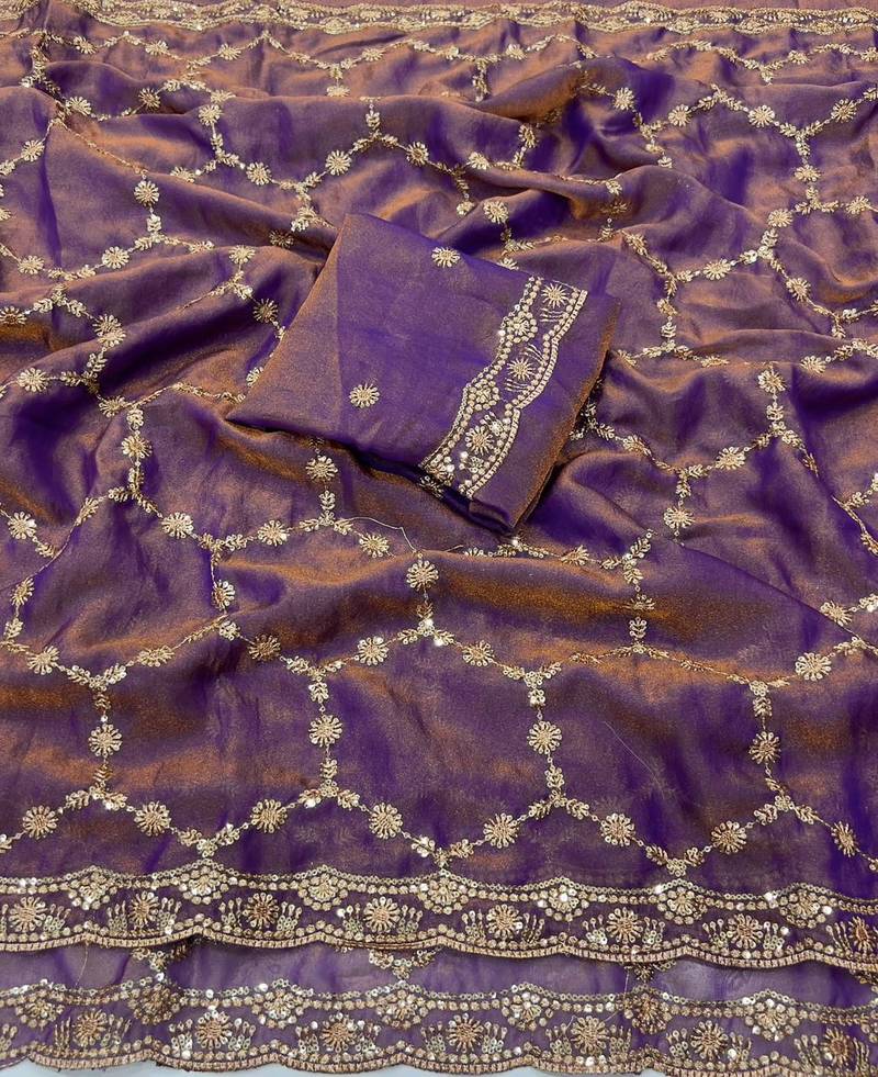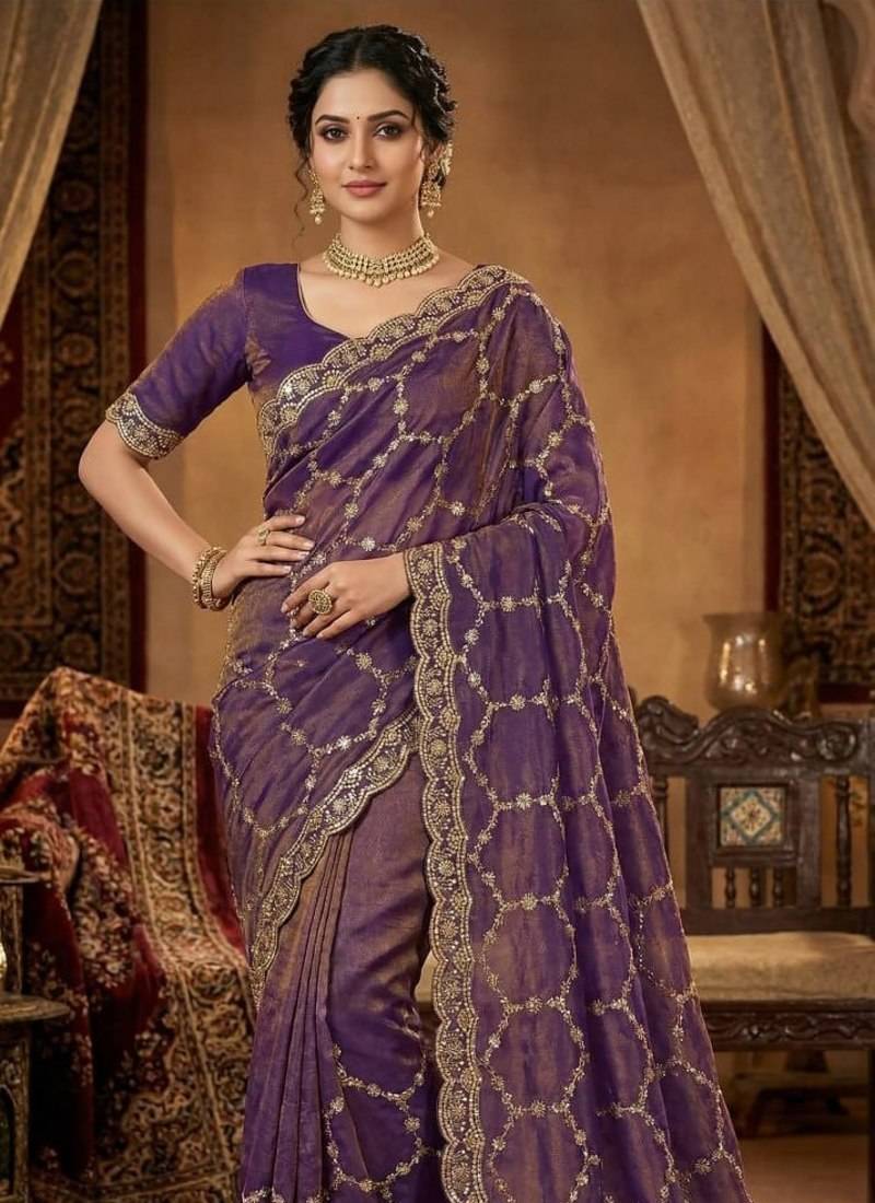 | Product Name | Lavendar Color Sequence Embroidery Work With Cut Work Border Silk Saree | |