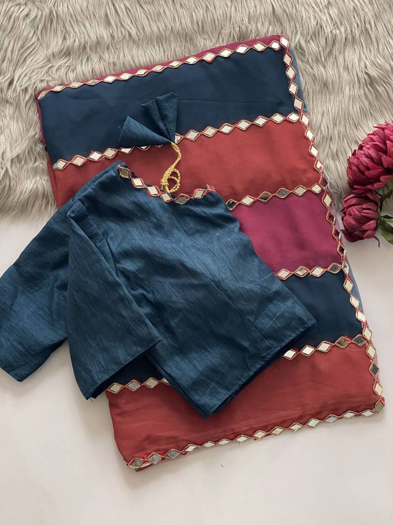 Product Name Multi Color Embrodery Coading Lace With Original Mirror Work Georgette Saree