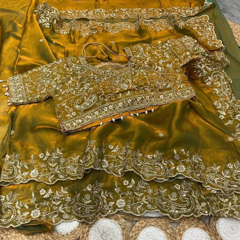 | Product Name | Olive Color Embroidery Sequence Work Heavy Border Satin Saree | |