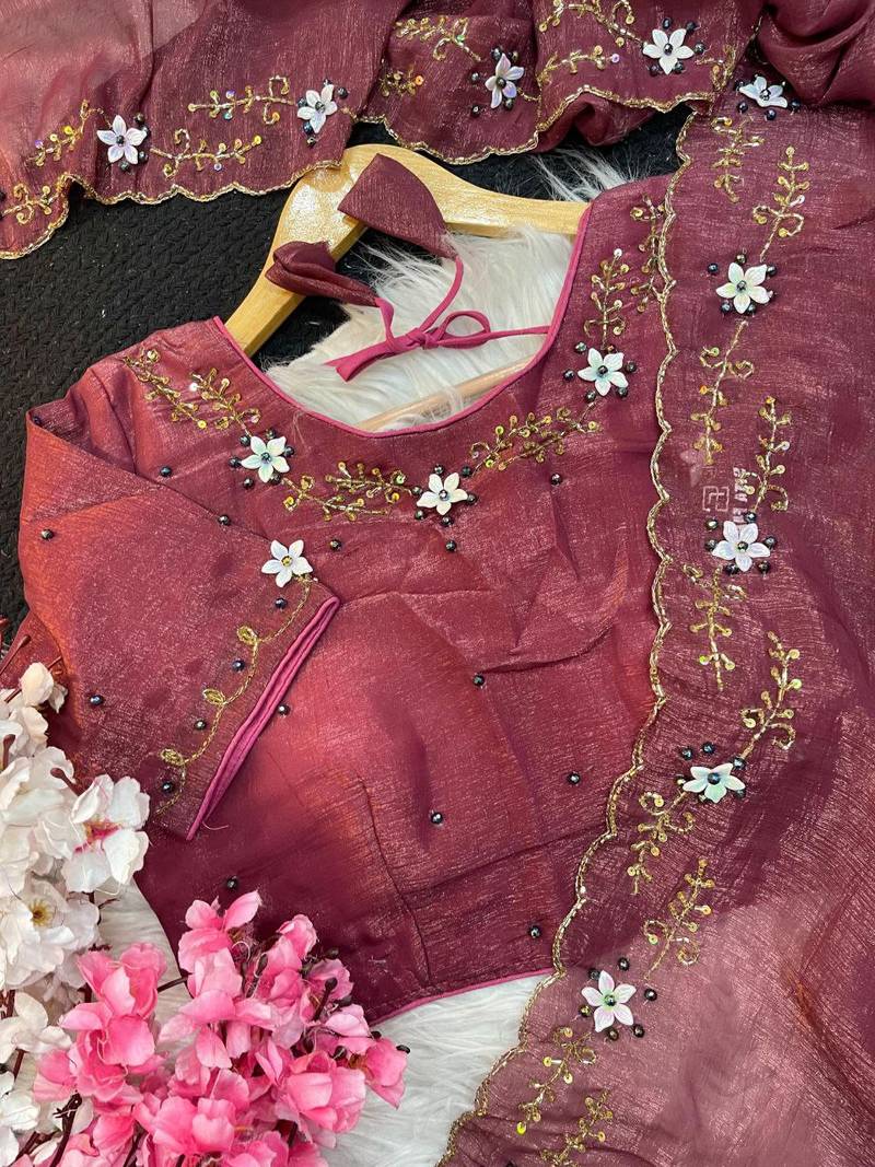 Paired With Fully Stiched Khatli Work Neck Pattern Blouse On Running Fabric