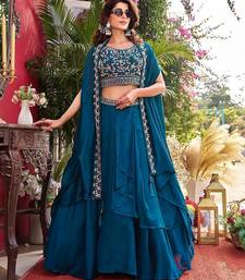 Peacock blue color embroidery moti bids and sequence work silk lahenga choli set