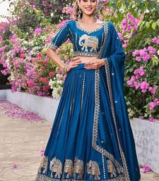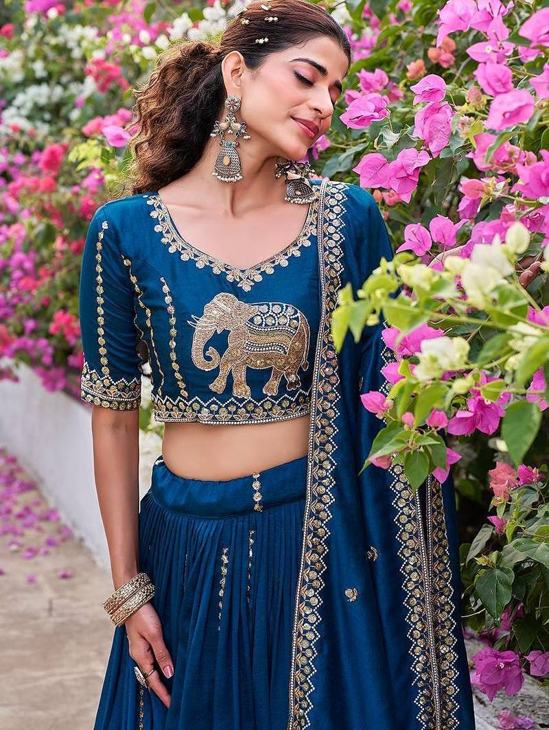 Peacock blue color embroidery sequence work with thred work silk lahenga choli set