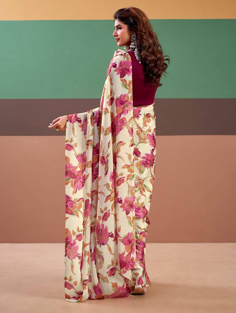 | Product Name | Pink Color Floral Printe Satin Silk Saree | |