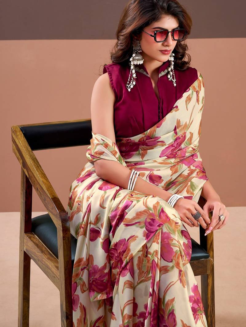 | Type | Satin Sarees , Floral Print | |