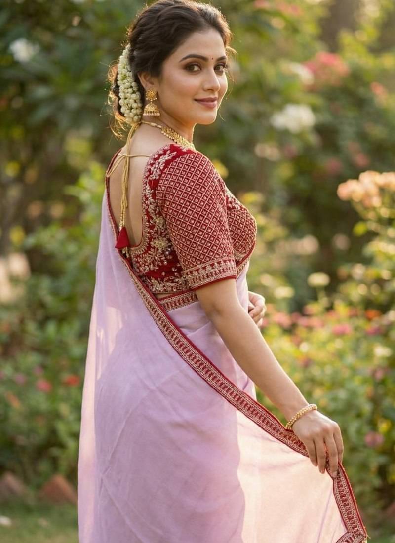 | • | Saree | : | Color- Pink / Fabric- Satin |