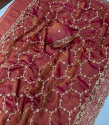 Pink color sequence embroidery work with cut work border silk saree