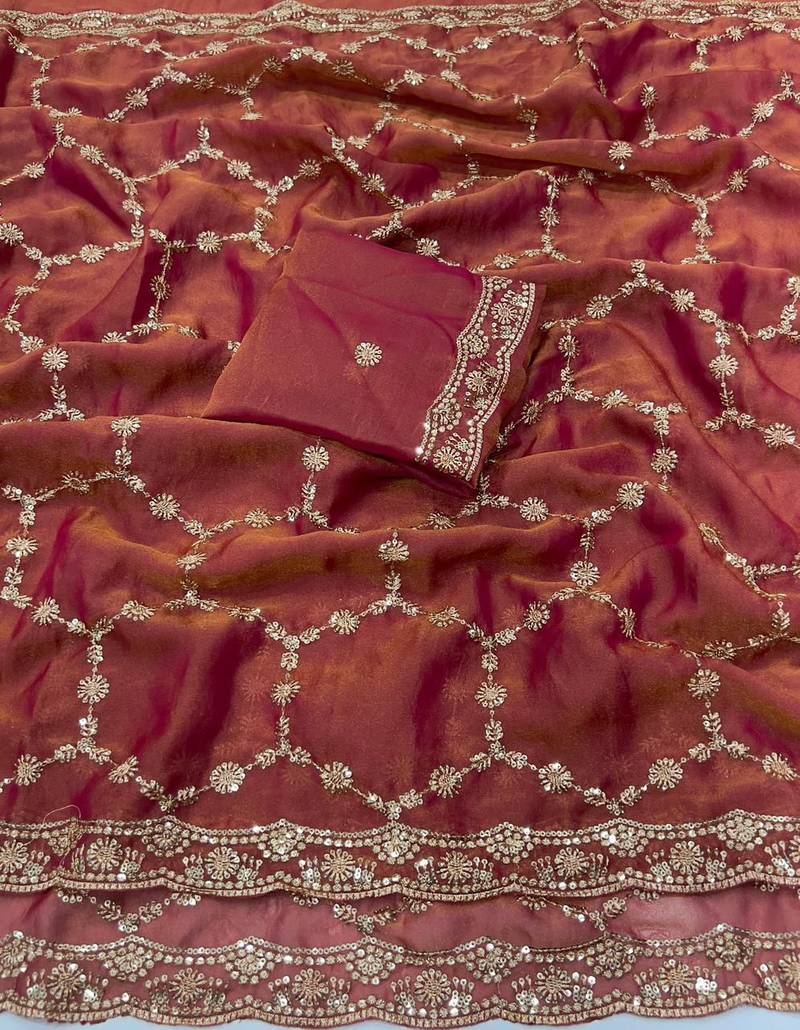| Product Description | Saree: Silk With Beautiful Sequence Embroidery Work With Cut Work Border Blouse: Silk Heavily Worked Fancy Blouse |