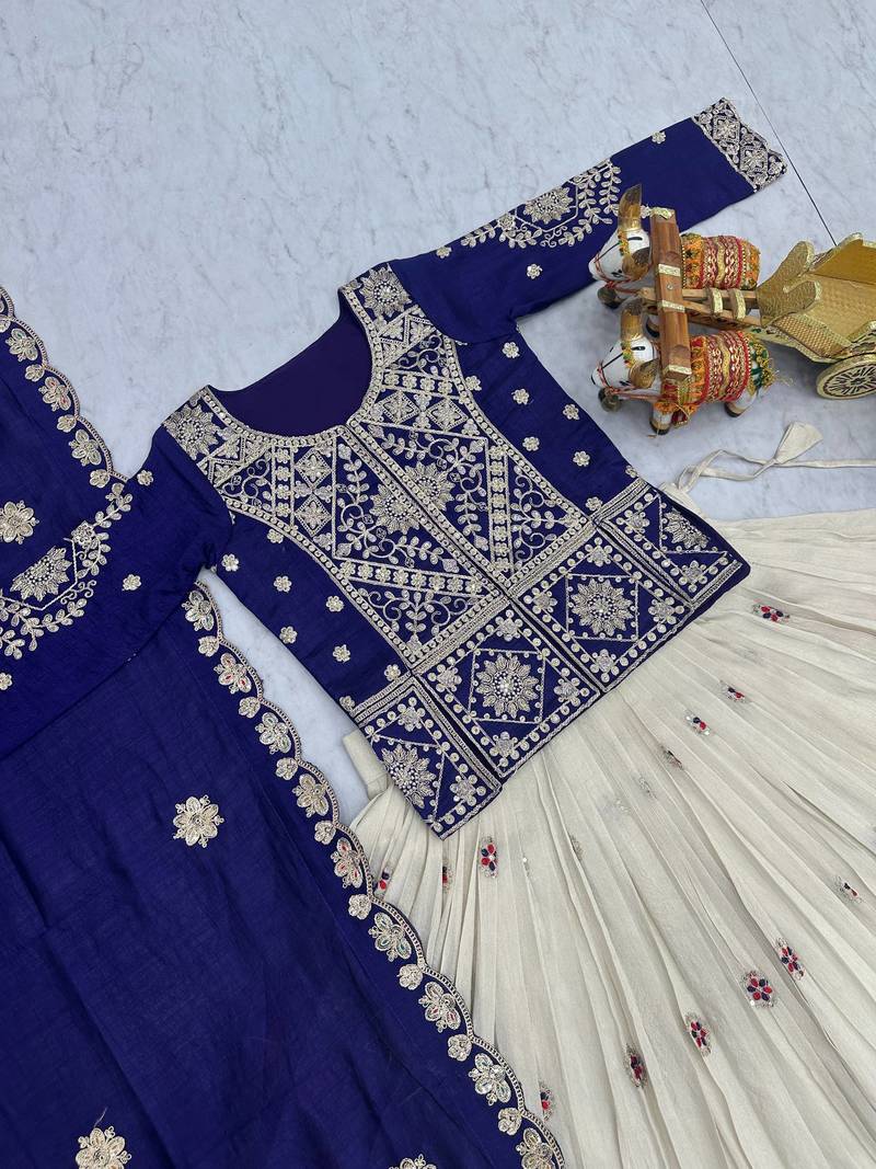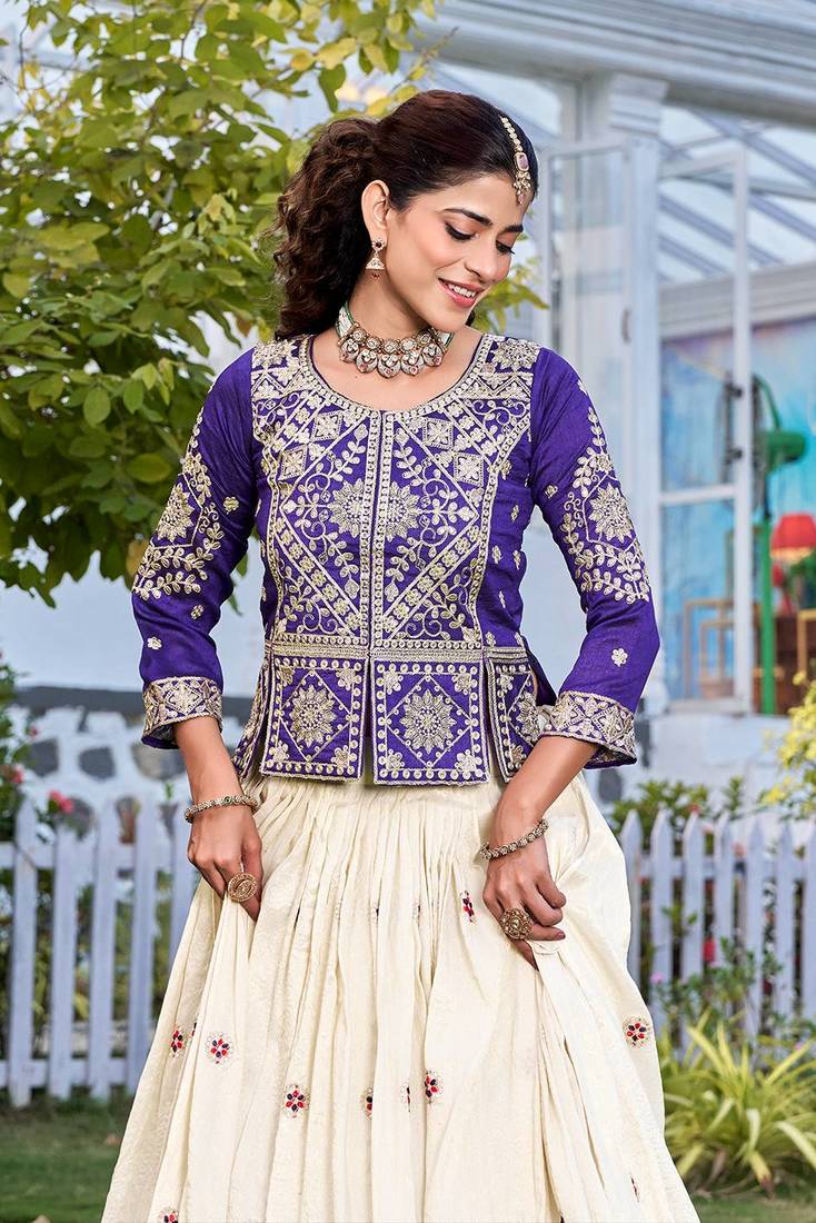 Product Name Purple Color Embroidery Sequence And Thred Work Tissue Silk Lahenga Choli Set