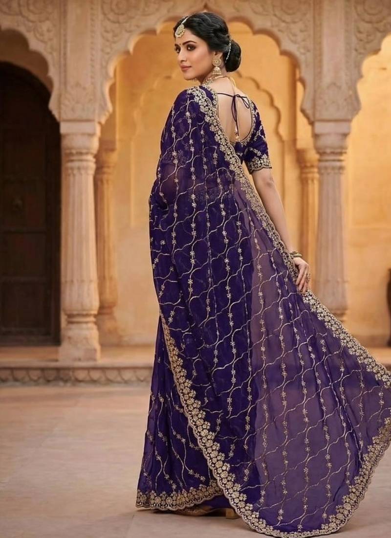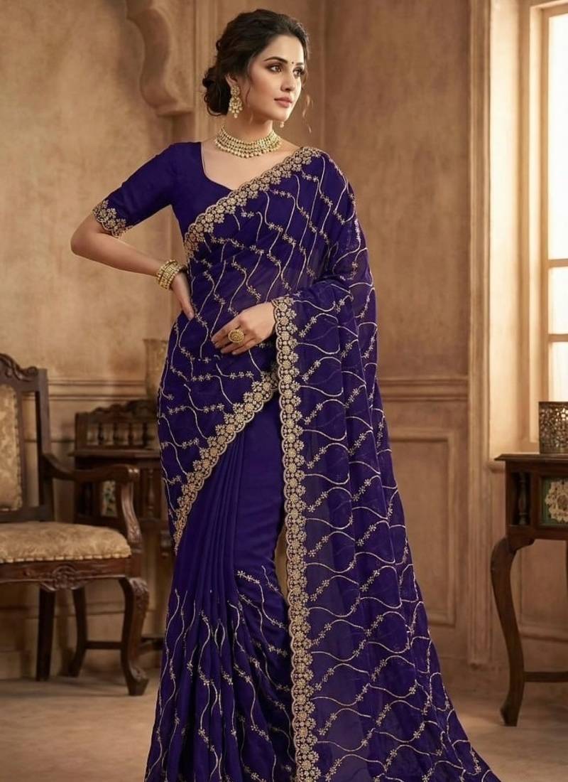Product Name Purple Color Sequence Embroidery Work With Cut Work Border Silk Saree