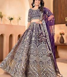 Purple color sequins and zari embroidery work net lahenga choli set