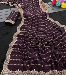 Purple color zari work and stone work vichitra silk saree