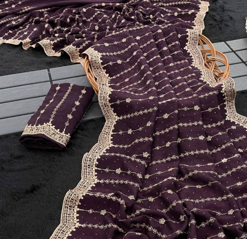 | Product Name | Purple Color Zari Work And Stone Work Vichitra Silk Saree | |