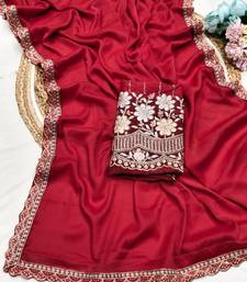 Red color heavy hand work and embroidery work georgette saree