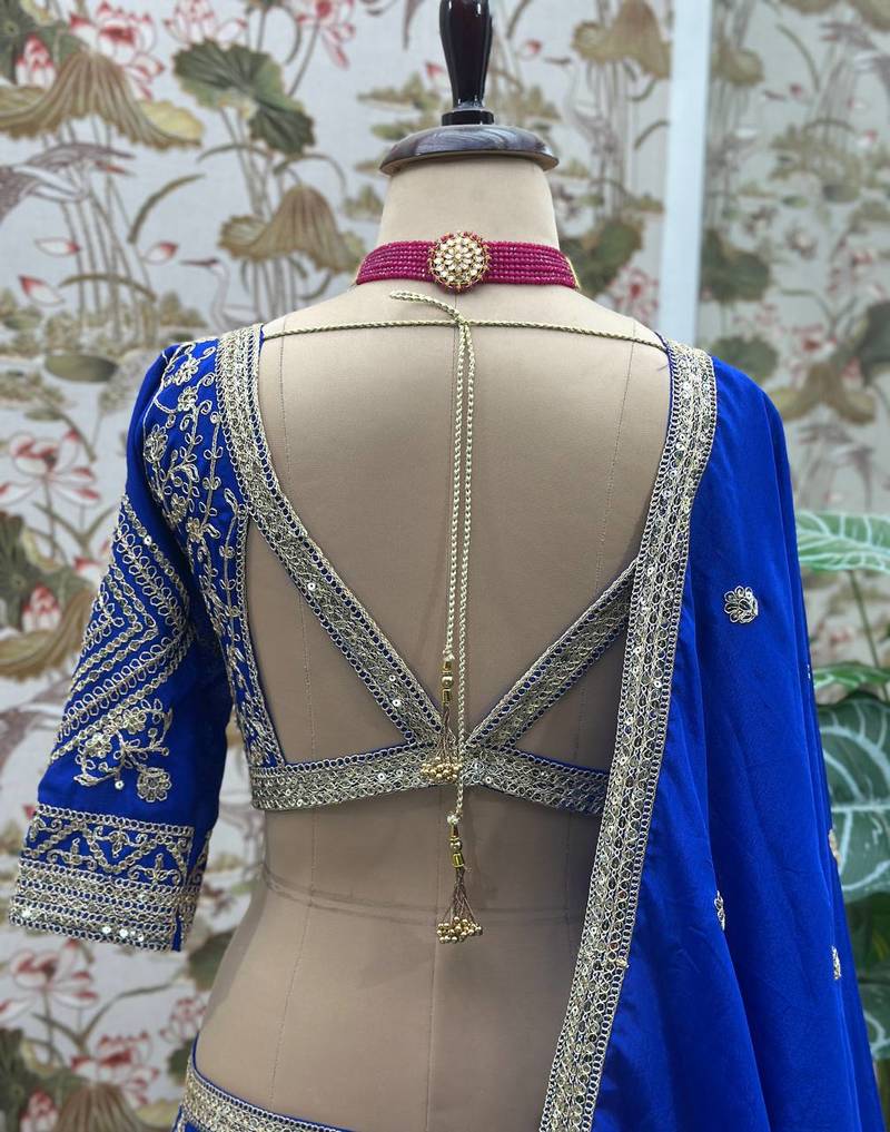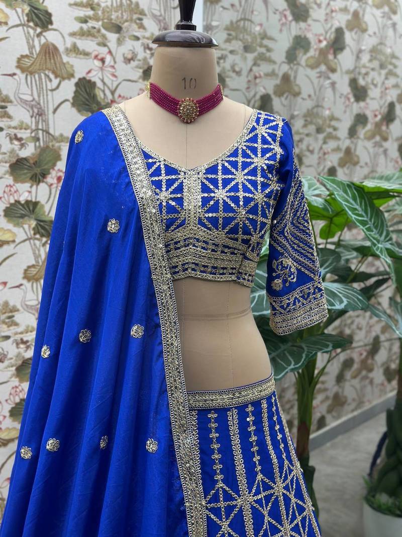 Royal blue color sequins and codding embroidery work chinon silk lahenga choli set