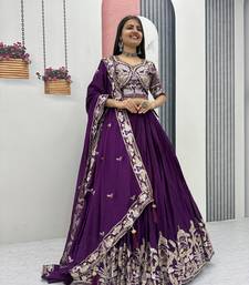 Royal purple color embroidery thread and sequence work chinon lahenga choli set