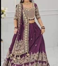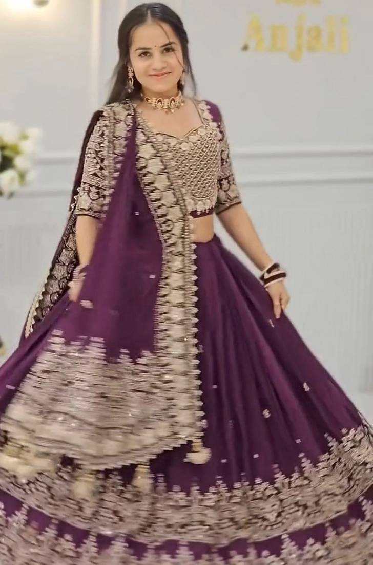 Royal purple color embroidery thread and sequence work georgette lahenga choli set