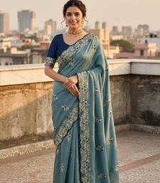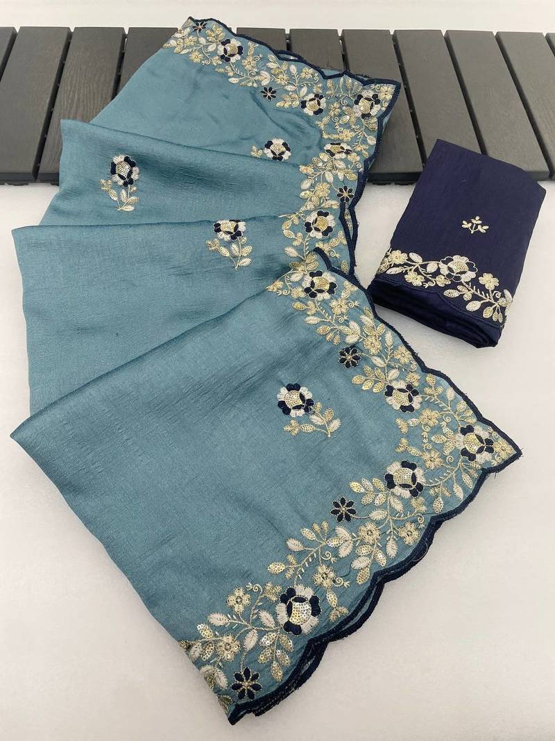 | Product Name | Sky Blue Color Amazing Sequences Thread Embroidery Work Vichitra Silk Saree | |