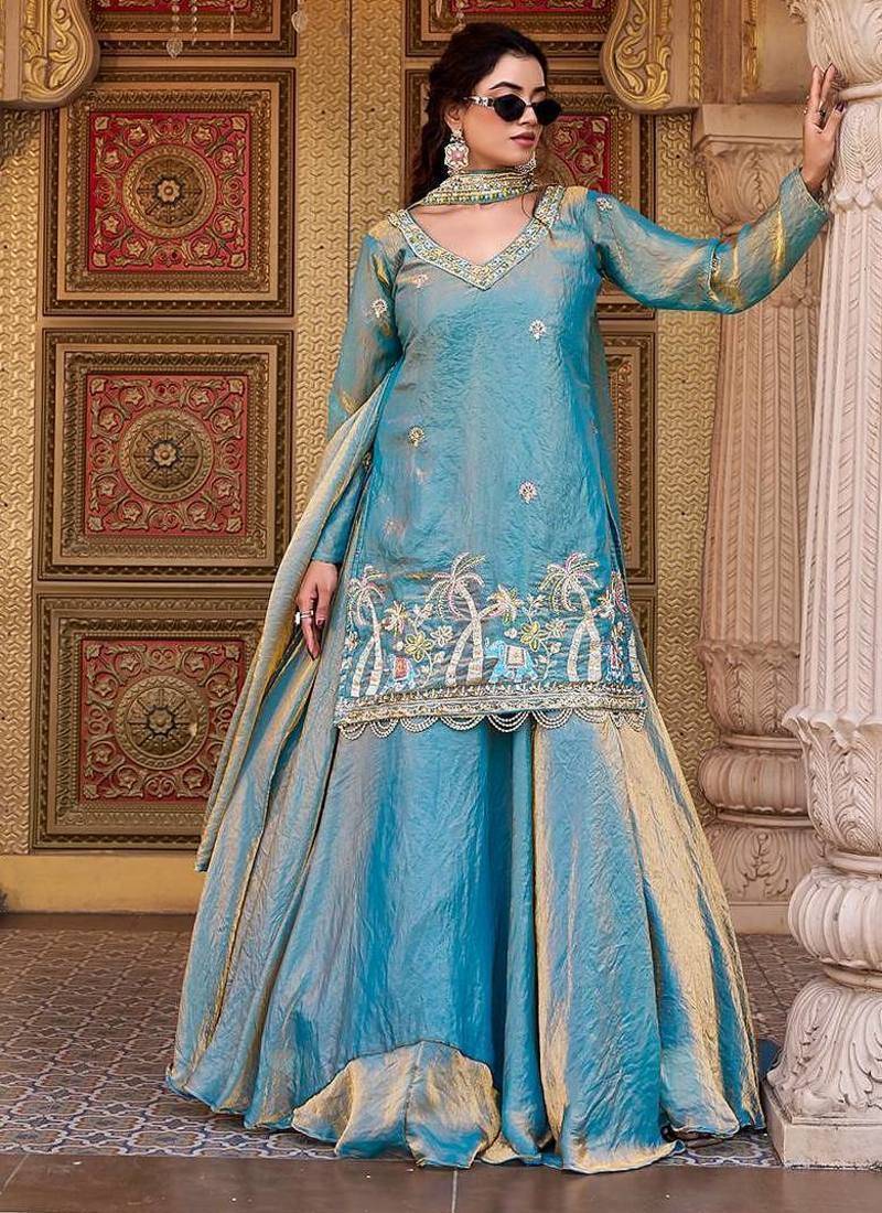 Sky Blue Color Embroidery bids Sequence And Thred Work Silk Lahenga Choli Set
