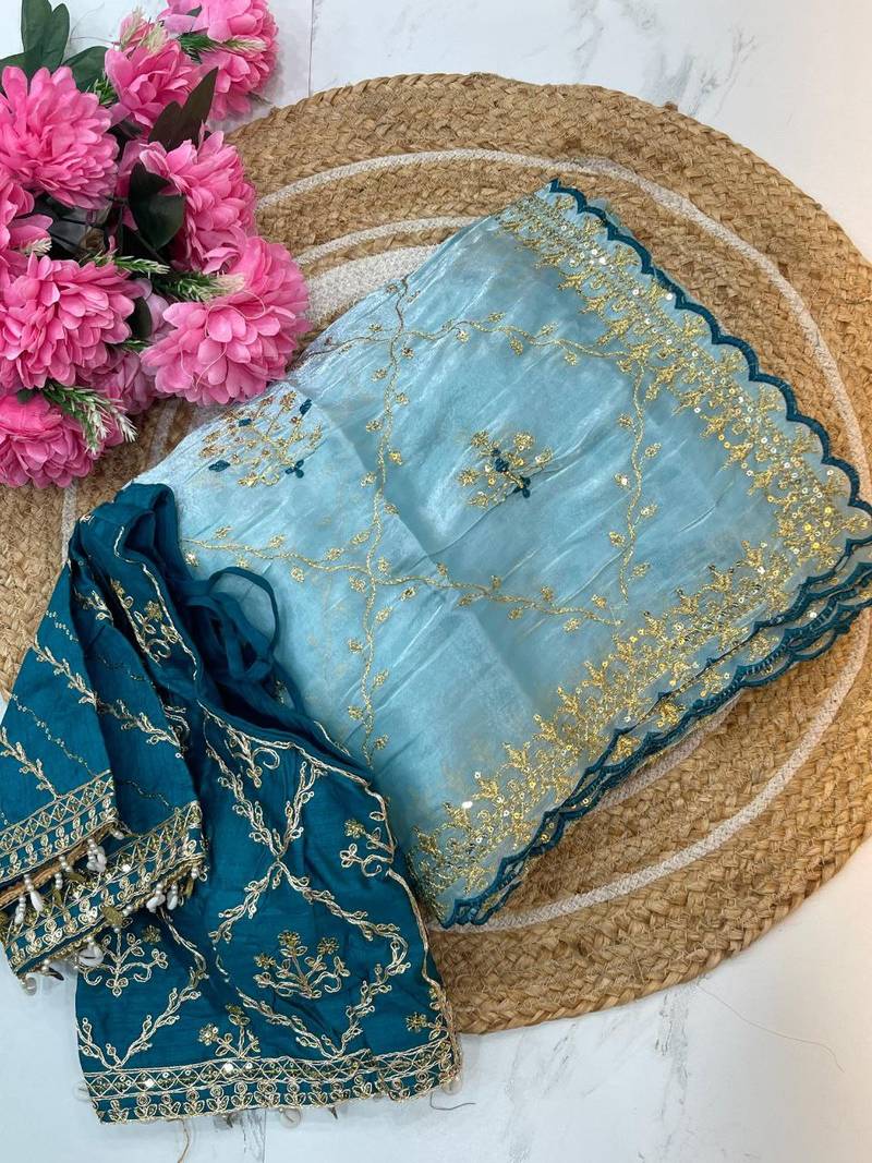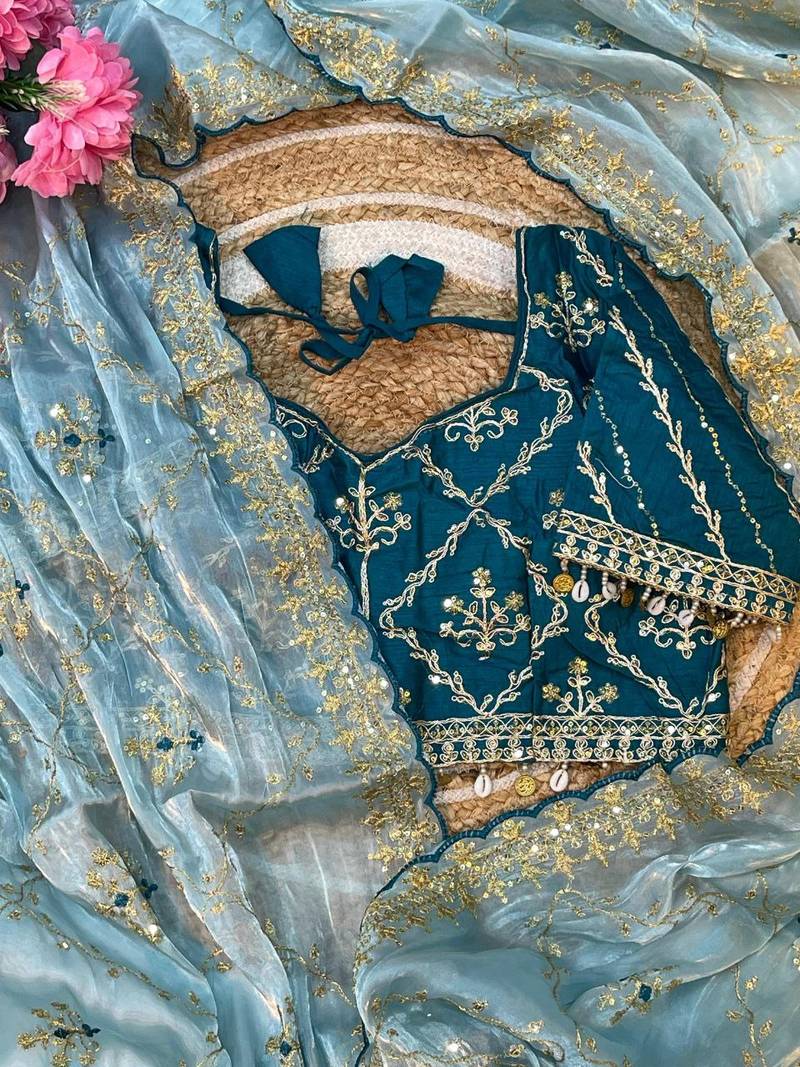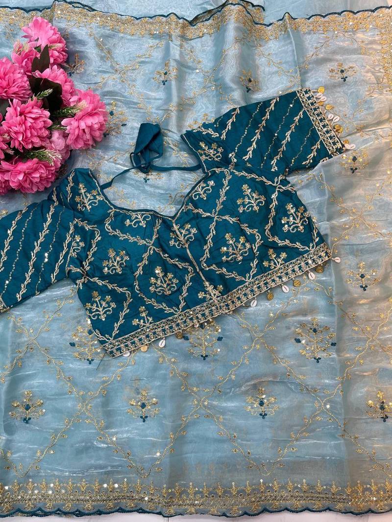 | Product Name | Sky Blue Color Embroidery Sequence Work Organza Silk Saree | |