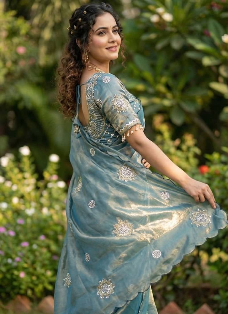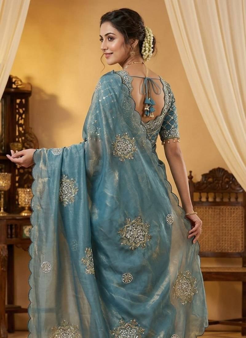| Product Name | Sky Blue Color Hand Work With Cut Work Aarko Border Sattin Silk Saree | |