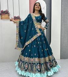 | Product Name | Teal Color Embroidery Sequence And Thread Work Vichitra Lahenga Choli Set | |