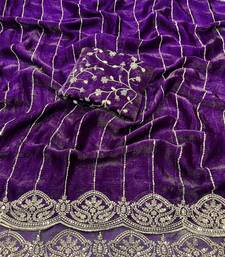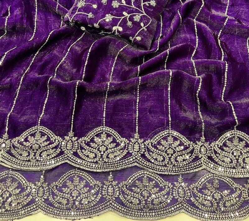 Violet Color  Sequence embroidery work with Cut work border  Chiffon Silk Saree
