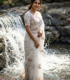 | Product Name | White Color Embroidery Beats Work Silk Saree | |