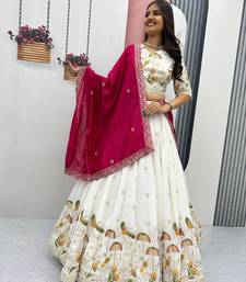 White color embroidery thread & sequence work vichitra silk lahenga choli set