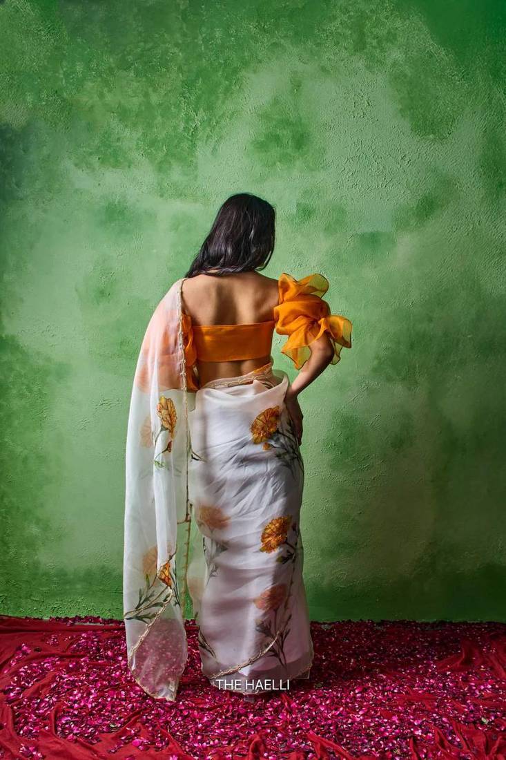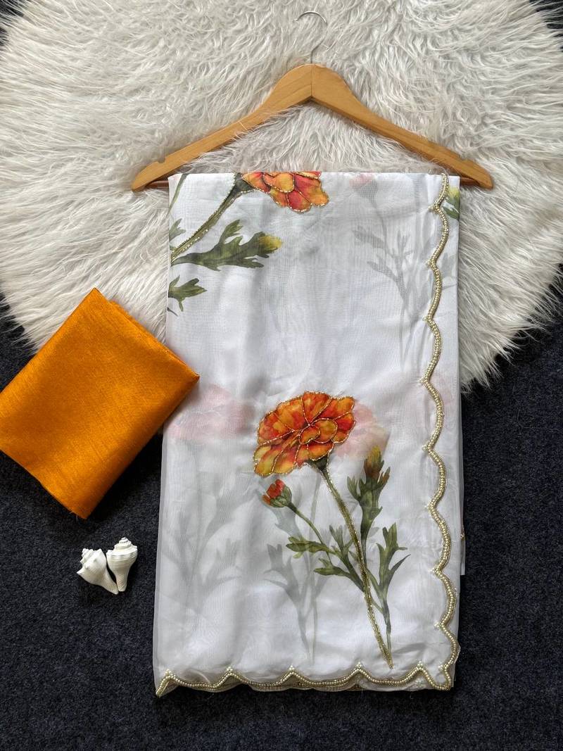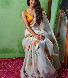 | Product Name | White Color Print And Khatali Handwork Work Organza Saree | |