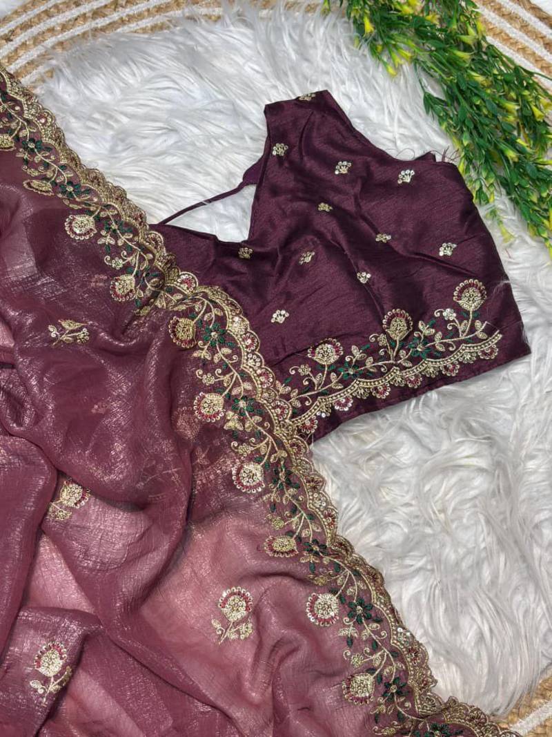 | Product Name | Wine Color Embroidery Sequence Work Silk Saree | |