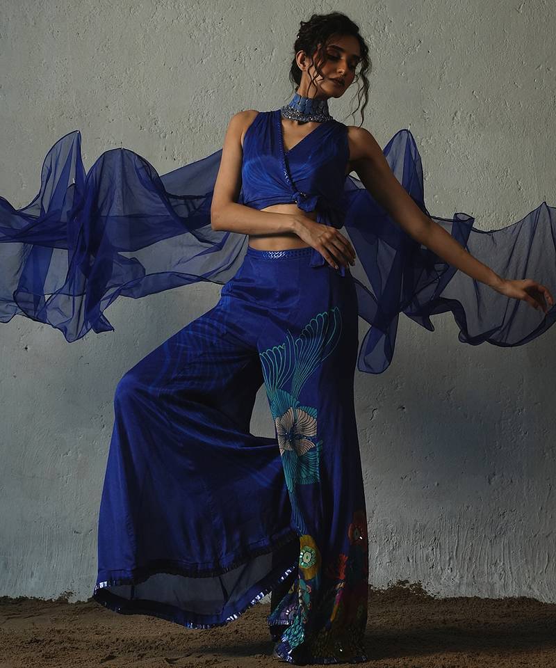 Blue plain chiffon co ord set