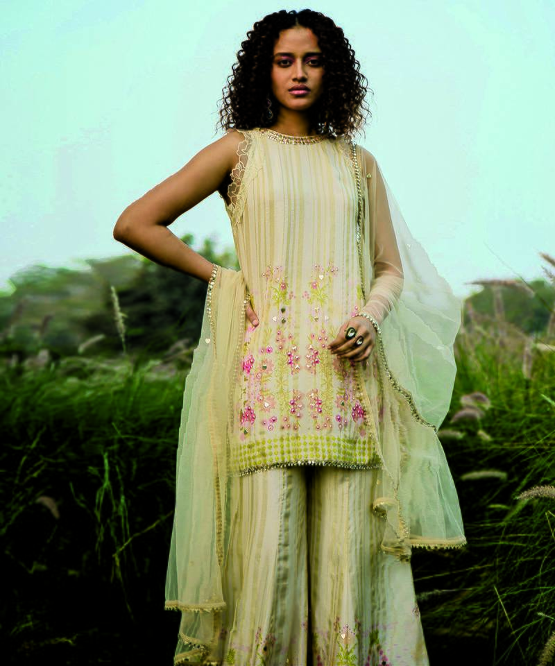 | Product Description | This Cream Net Sharara Set Showcases Intricate Embroidery That Adds A Touch Of Elegance. The Lightweight Fabric And Flared Sharara Create A Graceful Silhouette. Perfect For Festive Occasions Or Celebrations, It Pairs Beautifully With Statement Jewelry For A Sophisticated And Timeless Look.