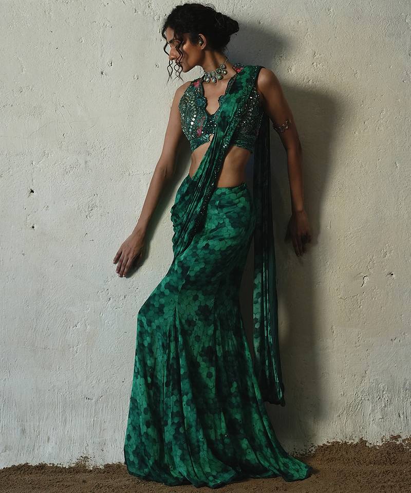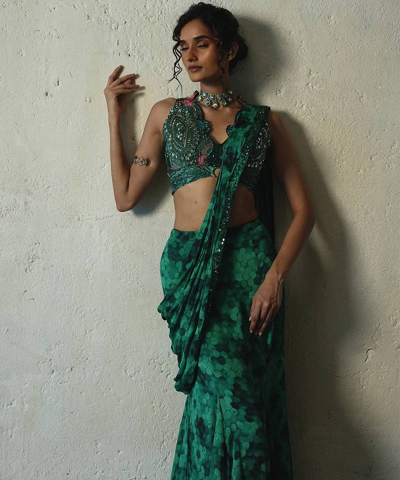 | • | Blouse | : | Color- Green / Fabric- Chiffon |
