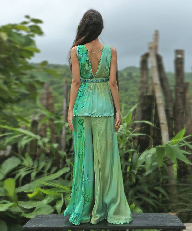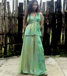 Green printed chiffon co ord set