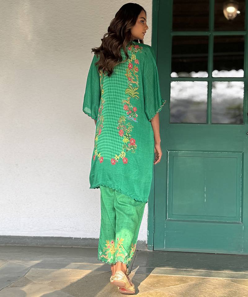 This Green Printed Crepe Kurta Set Exudes Fresh Elegance And Casual Charm. Crafted From Lightweight Crepe Fabric, It Features Vibrant Prints That Add A Lively, Stylish Touch. Perfect For Daytime Gatherings And Festive Occasions, It Offers A Comfortable Fit, Graceful Drape, And Timeless Ethnic Appeal.