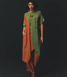 Green and orange embroidered crepe kurta set