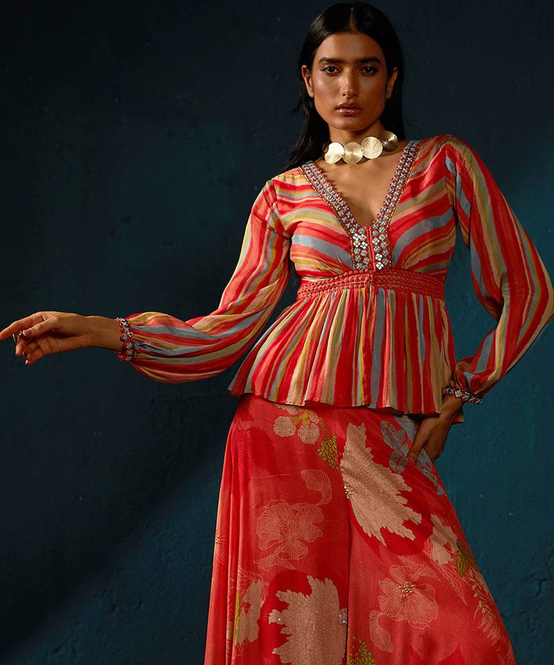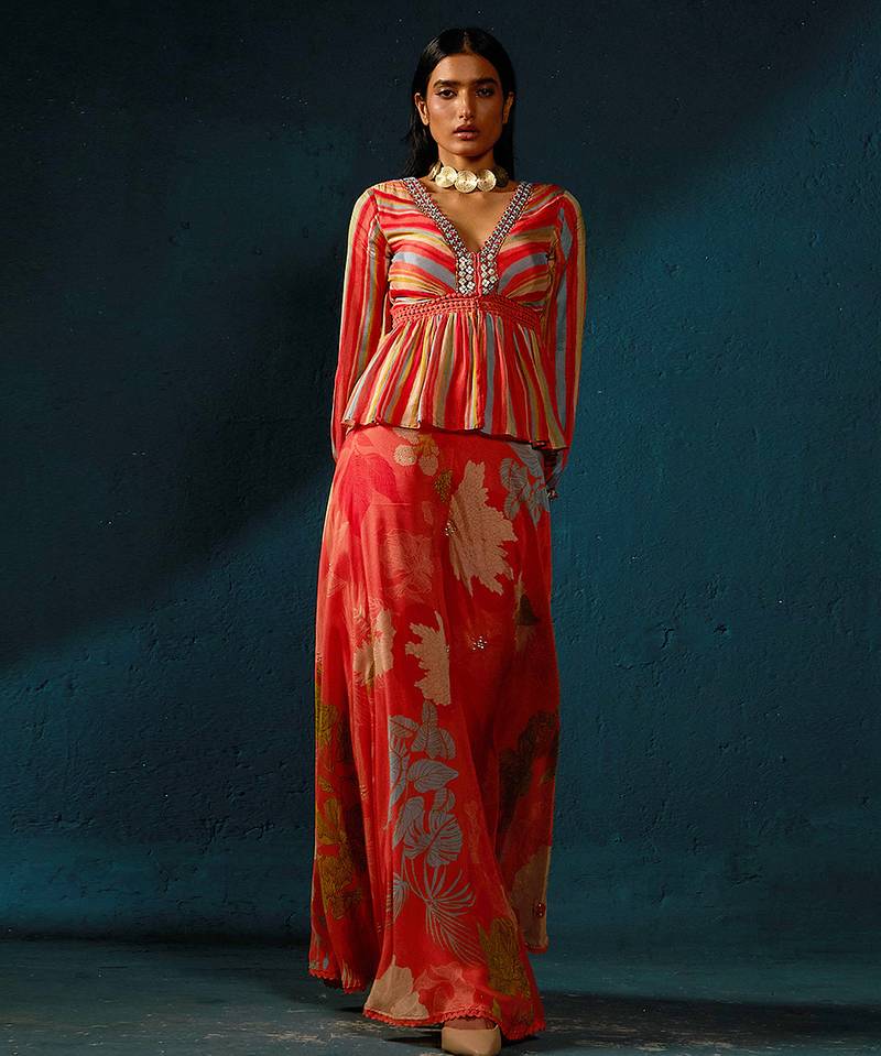 | Product Name | Orange Peach Printed Chiffon Co Ord Set | |