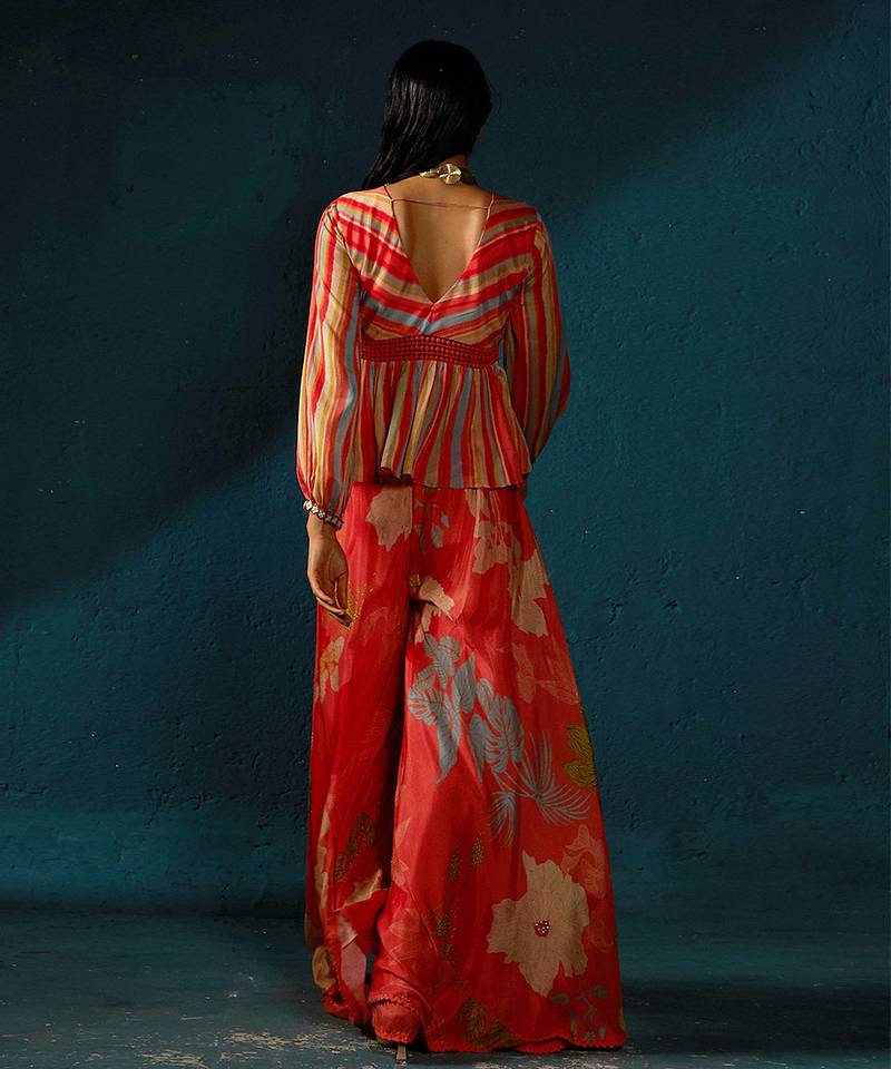 Orange peach printed chiffon co ord set