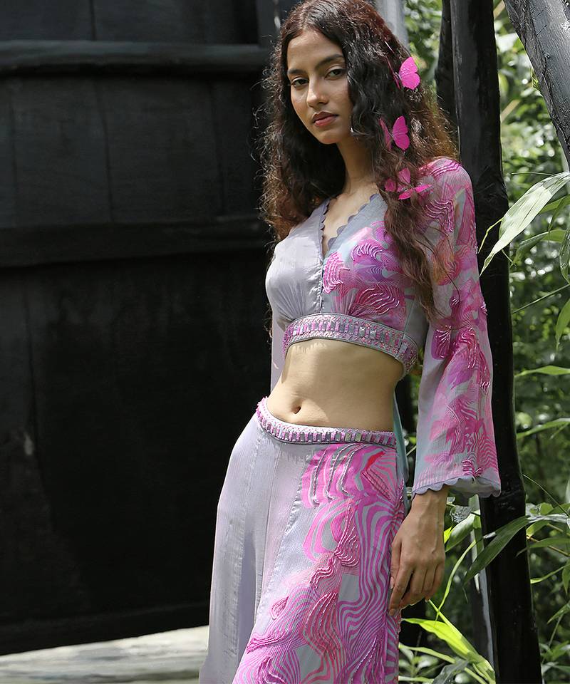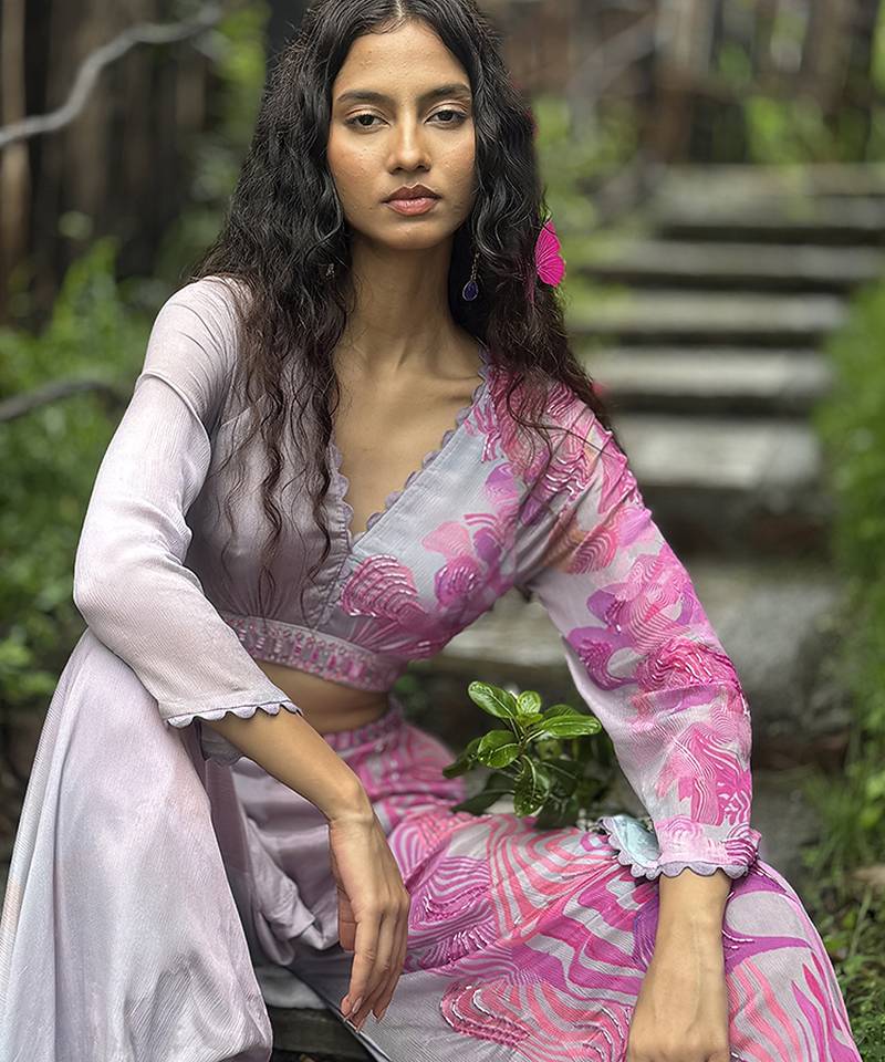Pink embroidered chiffon co ord set