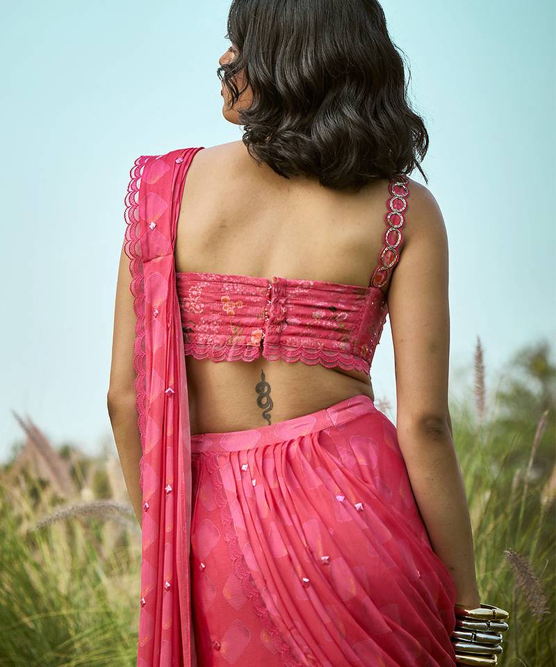 | Product Description | "This Pink Chiffon Saree Features Delicate Embroidery That Enhances Its Soft And Feminine Appeal. The Lightweight Fabric Drapes Effortlessly, Creating A Graceful And Flowy Silhouette. Perfect For Festive Occasions Or Evening Events, It Pairs Beautifully With Subtle Jewelry For A Refined, Elegant, And Timeless Look.